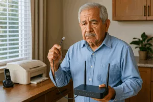 Internet caiu? Veja o que fazer antes de pedir ajuda. Passo a passo simples para vovôs e vovós resolverem sozinhos problemas com o Wi-Fi em casa, de forma segura e prática.