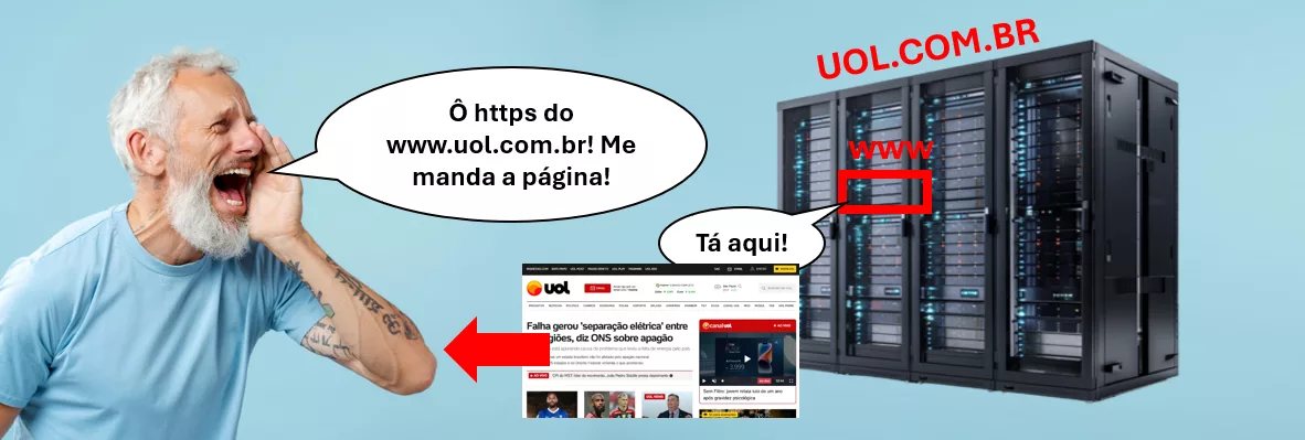 Resumindo: Você vai até o servidor www.uol.com.br e grita “https” e ele te devolve a página