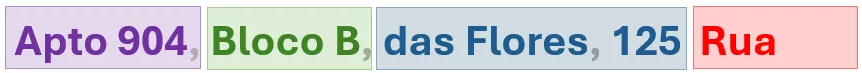 O endereço é “Rua das Flores, 125, Bloco B, Apartamento 904“. O que sabemos desse endereço?