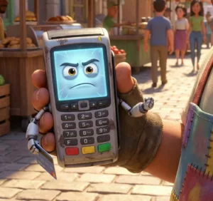 Peça para trocar de maquininha ou receber o pagamento de outra forma.