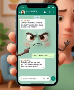 Depois joga um pouco de conversa fora e no final pede dinheiro para pagar uma conta. Pode ser um Pix ou um boleto para pagar. É GOLPE!