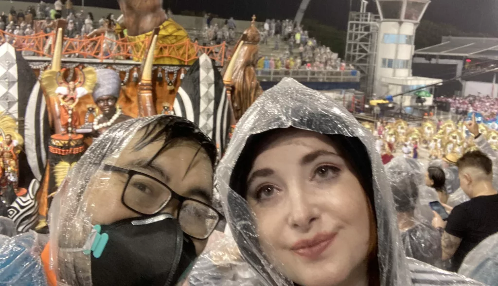 Nesse dia tomamos tanta chuva que, mesmo protegido, o celular da Simone entrou em contato com água e não ligou mais!