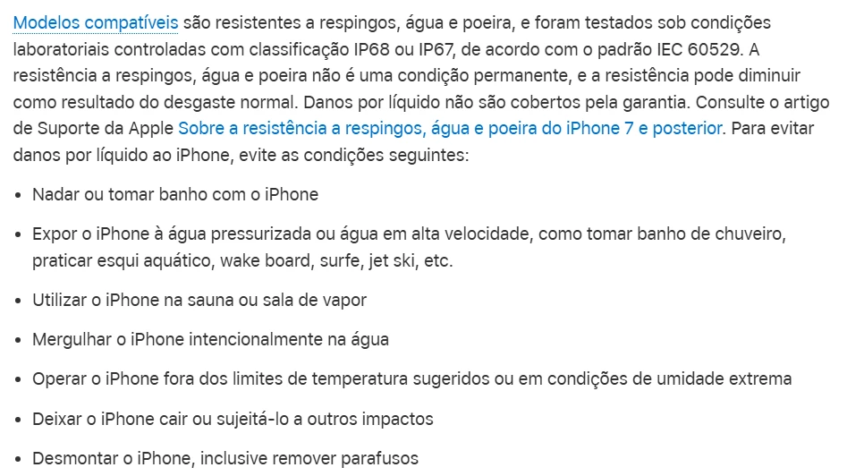 Manual do iPhone – Proteção IP68 ou IP67 a partir do iPhone 7